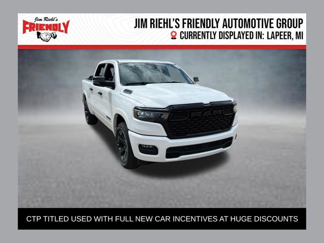 CTP Courtesy Transportation Program Titled used with full new car incentives at huge discounts. This Vehicle is currently located in Lapeer. Welcome to Jim Riehl's Friendly Chrysler Dodge Jeep Ram of Lapeer. Just North of FCA Headquarters on Lapeer Road South of I69. We are delivering vehicles Daily. To your home or office. Please call us today 810.664.2900. Sale Prices are based on incentives available in Lapeer County. Residency restrictions apply. Sale price includes Stellantis loyalty, or conquest offers when applicable to Stellantis offers.2026 Ram 1500 Big Horn/Lone StarBright White Clearcoat8-Speed Automatic3.6L V6 24V VVT4WD$11,949 off MSRP!Deluxe Cloth Bucket Seats, Heated Front Seats, Radio: Uconnect 5 Navigation with 12.0 Display, Wheels: 20 x 9.0 Aluminum Painted Clad.https://www.kbb.com/kbbreport/4oghk Descriptions and discounts are compiled automatically with human assistance. Errors can occur. Please verify all equipment with manufacturer monroney label prior to making a purchase decision. FCA Employee Price and/or Lease offer includes: $2000 - 2026 National SFS Lease Loyalty Bonus Cash . Exp. 04/30/2026 $3500 - 2026 National Retail Bonus Cash . Exp. 04/30/2026