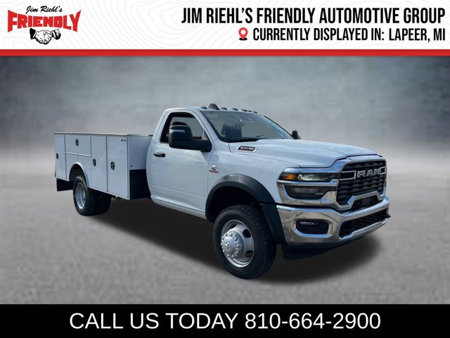 This Vehicle is currently located in Lapeer. Welcome to Jim Riehl's Friendly Chrysler Dodge Jeep Ram of Lapeer. Just North of FCA Headquarters on Lapeer Road South of I69. We are delivering vehicles Daily. To your home or office. Please call us today 810.664.2900. Sale Prices are based on incentives available in Lapeer County. Residency restrictions apply. Sale price includes Stellantis loyalty, or conquest offers when applicable to Stellantis offers.2026 Ram 5500HD TradesmanBright White Clearcoat8-Speed AutomaticCummins 6.7L I6 Turbodiesel4WD11' CM Service Body, Apple CarPlay/Android Auto, Front 1-Touch Down Power Windows, Front fog lights, ParkView Rear Back-Up Camera, Power steering, Radio: Uconnect 5 Navigation with 12.0 Display, Remote Keyless Entry.https://www.kbb.com/kbbreport/g1e59 Descriptions and discounts are compiled automatically with human assistance. Errors can occur. Please verify all equipment with manufacturer monroney label prior to making a purchase decision. FCA Employee Price and/or Lease offer includes: $2500 - 2026 National Bonus Cash . Exp. 04/30/2026 Price includes $14,950 in dealer added accessories.