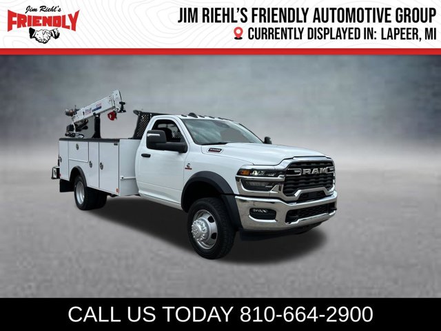 This Vehicle is currently located in Lapeer. Welcome to Jim Riehl's Friendly Chrysler Dodge Jeep Ram of Lapeer. Just North of FCA Headquarters on Lapeer Road South of I69. We are delivering vehicles Daily. To your home or office. Please call us today 810.664.2900. Sale Prices are based on incentives available in Lapeer County. Residency restrictions apply. Sale price includes Stellantis loyalty, or conquest offers when applicable to Stellantis offers.2026 Ram 5500HD Tradesman Mechanics CraneBright White ClearcoatMechanics Crane8-Speed AutomaticCummins 6.7L I6 Turbodiesel4WDReading 11' Mechanics Service Crane, 4,000 lbs crane with 16' reach, Built in Tool Boxes and more!, 4G LTE Wi-Fi Hot Spot, Apple CarPlay/Android Auto, Cargo and CHMSL Lamp, Radio: Uconnect 5 Navigation with 12.0 Display.https://www.kbb.com/kbbreport/lexft Descriptions and discounts are compiled automatically with human assistance. Errors can occur. Please verify all equipment with manufacturer monroney label prior to making a purchase decision. FCA Employee Price and/or Lease offer includes: $2500 - 2026 National Bonus Cash . Exp. 04/30/2026 Price includes $54,700 in dealer added accessories.