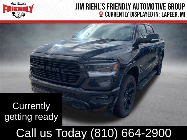 This Vehicle is currently located in Lapeer. Welcome to Jim Riehl's Friendly Chrysler Dodge Jeep Ram of Lapeer. Just North of FCA Headquarters on Lapeer Road South of I69. We are delivering vehicles Daily. To your home or office. Please call us today 810.664.2900. Sale Prices are based on incentives available in Lapeer County. Residency restrictions apply. Sale price includes Stellantis loyalty, or conquest offers when applicable to Stellantis offers.2020 Ram 1500 Laramie Diamond Black Crystal Pearlcoat HEMI 5.7L V8 Multi Displacement VVT 8-Speed Automatic 4WDClean CARFAX. Auto High Beam Headlamp Control, Automatic temperature control, Black Exterior Truck Badging, Black Headlamp Bezels, Black Interior Accents, Black Tubular Side Steps, Blind Spot & Cross Path Detection, Body Color Door Handles, Body Color Exterior Mirrors, Body Color Front Bumper, Body Color Premium Power Mirrors, Body Color Rear Bumper w/Step Pads, Delay-off headlights, Dome Dual LED Reading Lamp, Driver Seat Memory, Dual Exhaust w/Black Tips, Dual-Pane Panoramic Sunroof, Foam Bottle Insert (Door Trim Panel), Front fog lights, Fully automatic headlights, Grille Surround 3 Black Texture 2 Black, harman/kardon 19 Speaker Premium Sound, Heated door mirrors, Heated Front Seats, Heated Second Row Seats, Heated Steering Wheel, Illuminated entry, Laramie Level 2 Equipment Group, Leather Trimmed Bucket Seats, LED Dome/Reading Lamp, Memory seat, Navigation System, Night Edition, ParkSense Front/Rear Park Assist w/Stop, ParkView Rear Back-Up Camera, Pedal memory, Power driver seat, Quick Order Package 27H Laramie, Radio: Uconnect 4C Nav w/8.4 Display, Rain Sensitive Windshield Wipers, Rear 60/40 Folding Split Recline Seat, Rear Underseat Compartment Storage, Remote keyless entry, Remote Tailgate Release, Security system, Sport Performance Hood, Tailgate Ajar Warning Lamp, Ventilated Front Seats, Wheels: 22 x 9 Forged Aluminum.https://www.kbb.com/kbbreport/swkir